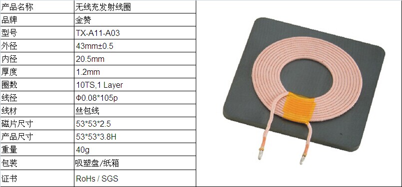 東莞市石碣金贊五金電子制品廠專業生產手機無線充發射及接收線圈,符合